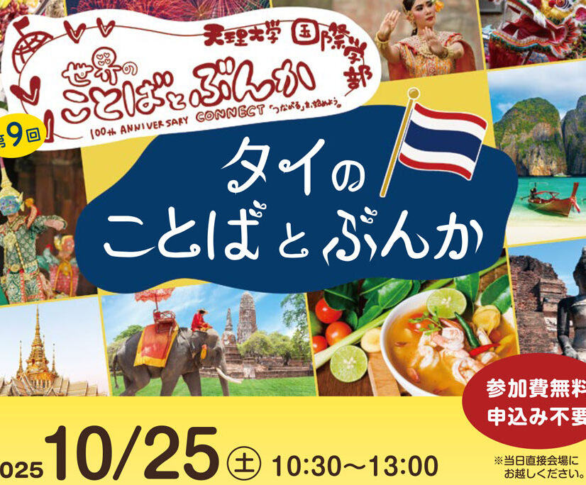 天理大学創立百周年記念 国際学部市民講座 第9回「タイのことばとぶんか」(10/25開催)