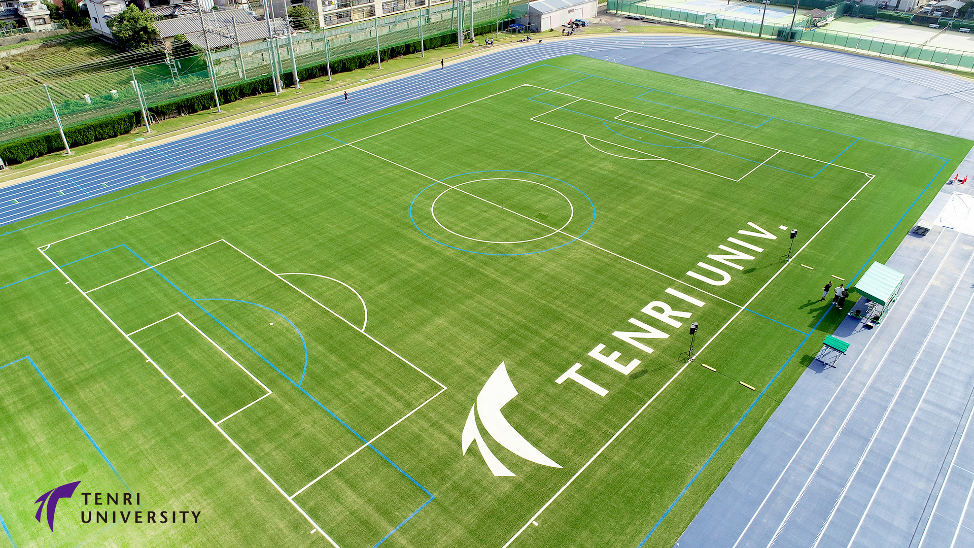 All types of track and field events can be practiced, and inside there is a field for soccer as well. The blue track is made of polyurethane material for the safety of the competitors, and it also prevents heat stroke. The field is covered with artificial turf for durability and safety. Renovated in 2018, the stadium has been transformed into a more beautiful and functional arena.