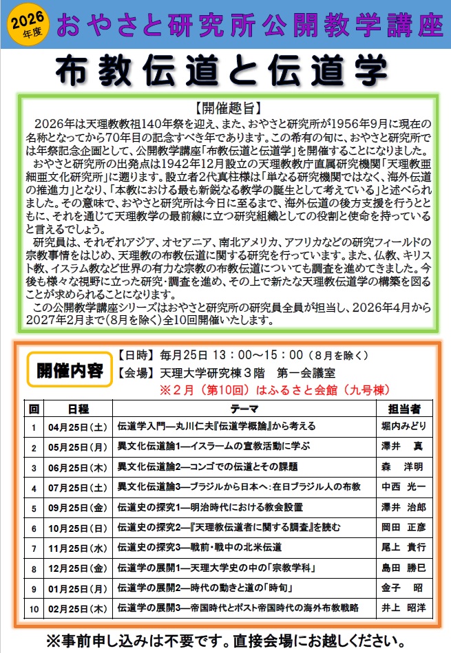 2026年度公開教学講座 ─布教伝道と伝道学─