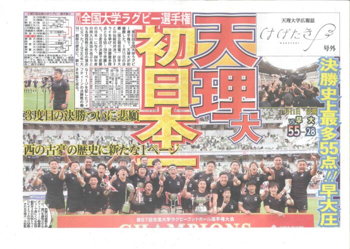 本学ラグビー部が、第57回全国大学ラグビー選手権において、初めて大学日本一に輝いたのです。