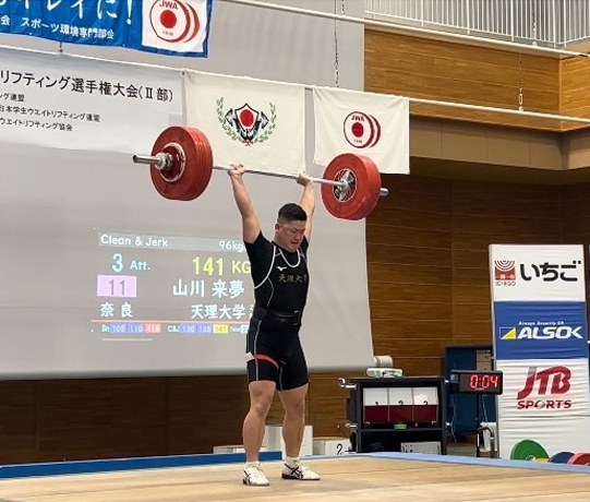 96kg級 山川 来夢(体育2) スナッチ 110kg、C&ジャーク 141kg、トータル 251kg 2位