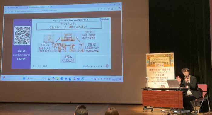 テーマは「やってよかった!人生会議〜人生会議のすすめ〜」で、奈良東病院 医師 中村義徳先生を講師にお迎えし、人生会議の意義や実践方法についてご講演いただきました。
