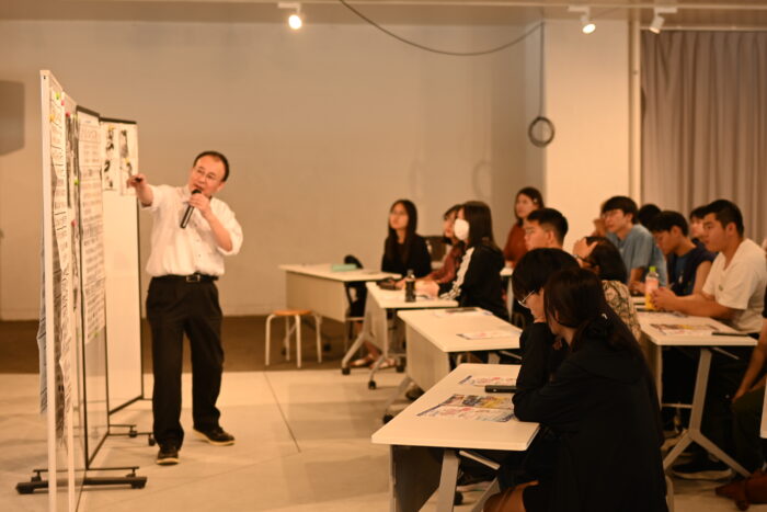 開会に引き続き、学科主任から閉会の挨拶が行われ、大盛況のなかで今回の講座は幕を閉じました。講師を務めてくださった金巻とよじ先生、当日会場に来てくださった参加者の皆様に感謝を申し上げます。また、会場設営に協力くださったスタッフの皆様にも合わせて感謝申し上げます。