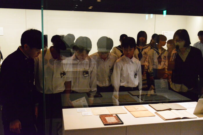 『坊っちゃん』は中学3年生の国語教科書にも掲載されており、生徒にとっても身近な作品です。今回の特別授業を通じて、生徒たちは作品の背景や作者の人物像、漱石と子規の友情について学び、自筆資料に直接触れる貴重な体験を得ることができました。