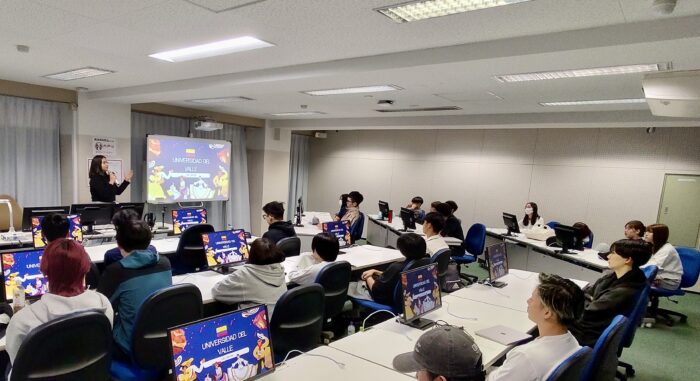 短期留学生として現在本学で学ぶミシェル・オソリオさんは、バジェ大学が位置する都市カリを「サルサの聖地」として紹介しました。自然豊かなキャンパス環境や、フレンドリーな教授陣と学生の雰囲気、活発なサークル活動など、現地学生の活気ある大学生活を伝えてくれました。