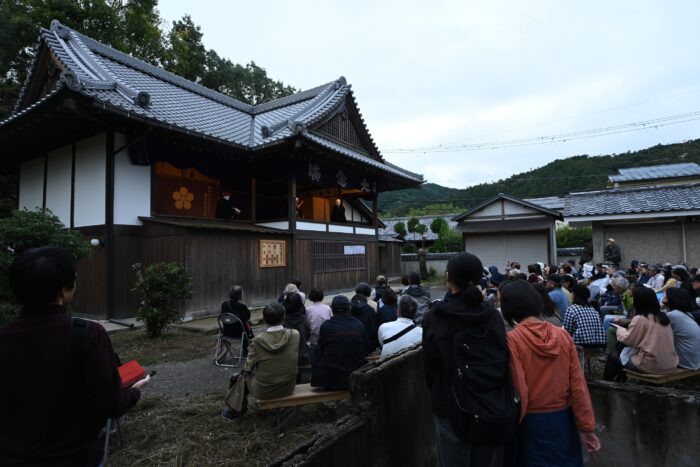 第1回目となる現地調査では、2024年度に引き続き、嵯峨大念佛狂言保存会様に協力を賜り、同保存会が主催する秋季公演を見学させていただきました。