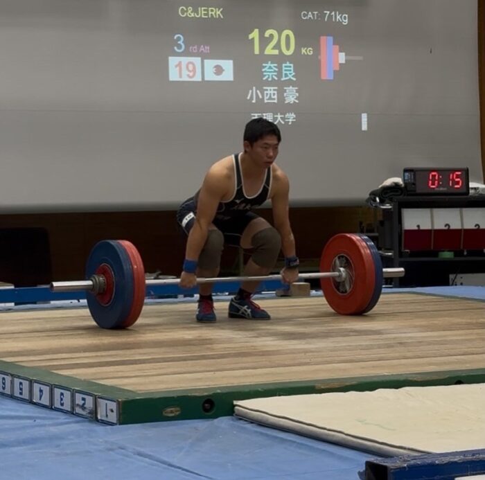 男子71kg級 小西 豪(体育4) S 101kg、 C&J 117kg、トータル 218kg 5位