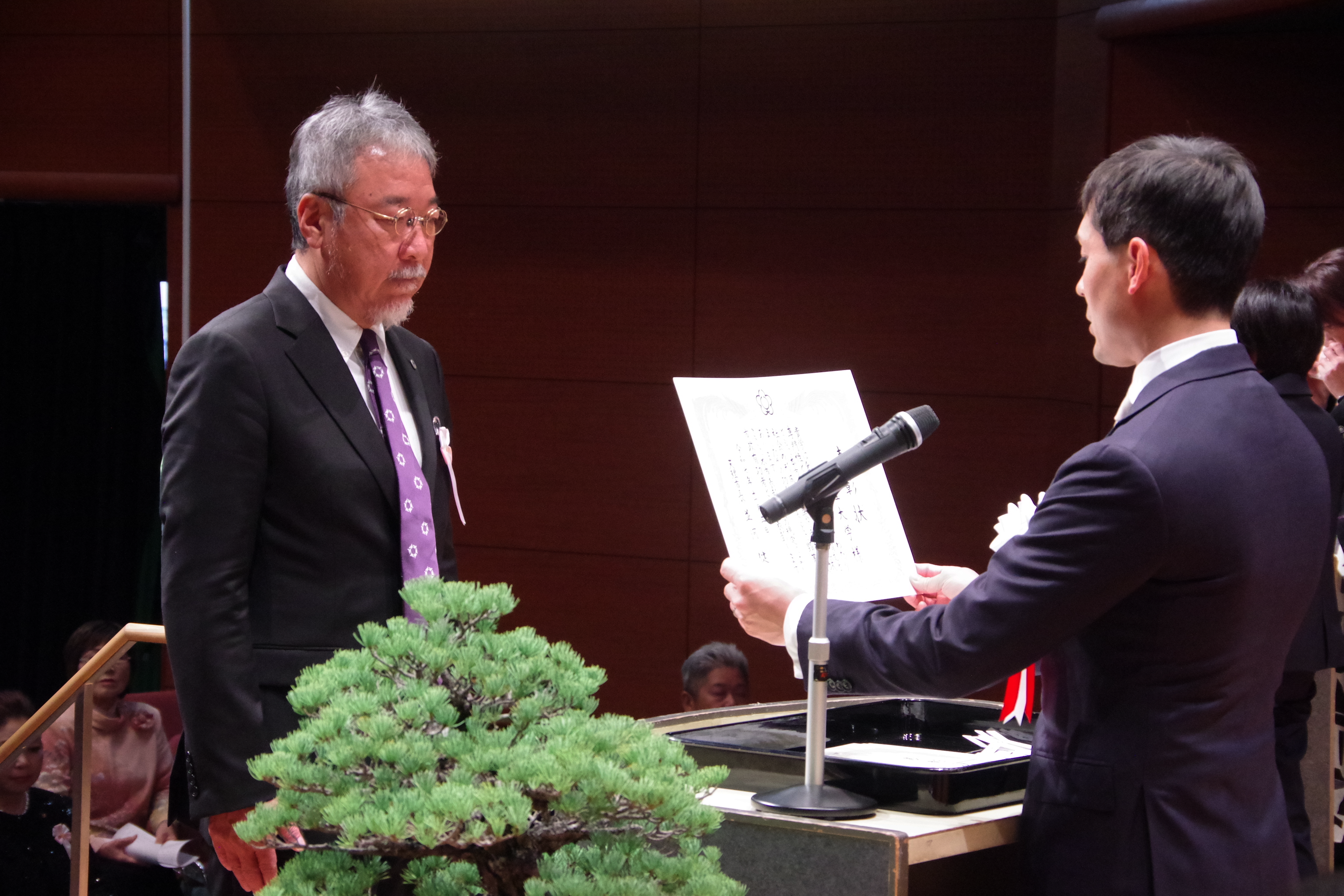 式辞で並河健天理市長は、「世の中の変化にしなやかに適応しながら、市民の皆さまが安心して幸せに暮らせる共生社会を実現したい。お互いに思いやり、支え合うまちであり続けたい。今回の表彰を機に、さらなるご鞭撻をお願いしたい。」と述べました。