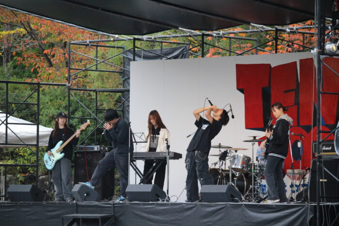 特設ステージでは、学生有志によるバンド演奏のほか、ストリートダンス同好会、創作ダンス部、雅楽部、マーチング同好会などの発表、芸人LIVEが行われました。