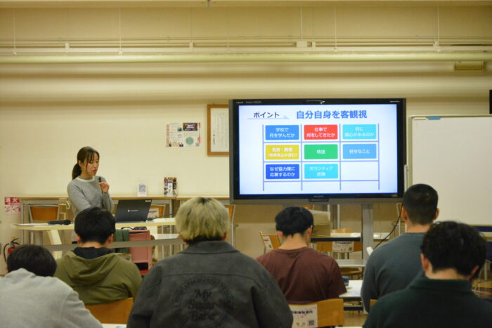応募の流れに加え、経済面・健康面・安全面・帰国後の進路など、学生が不安に感じやすい点についても丁寧に解説しました。