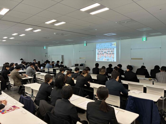 2025年度は「ファーム地方主催試合を舞台にしたスポーツツーリズム」をテーマに、天理大学をはじめ、大阪商業大学・阪南大学・大阪成蹊大学・関西大学(高槻キャンパス)・桃山学院教育大学・大阪体育大学の7大学が参加。各大学はシーズン中に現地調査を行い、調査結果をもとにプレゼンテーションを実施しました。