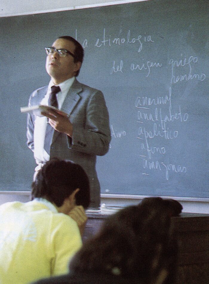1926年に西(西班牙)語部が開設され、1944(昭和19)年にはイスパニヤ語科に改められ、天理大学開学後は外国語学部イスパニヤ学科としてスペイン語教育を施してきました。本学は私学で最初の外国語学校ですが、同時に私学で最初にスペイン語の学科を設けた学校でもあります。つまり私学で最古のスペイン語学科を開設した歴史をもつ大学です。