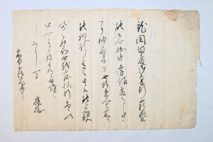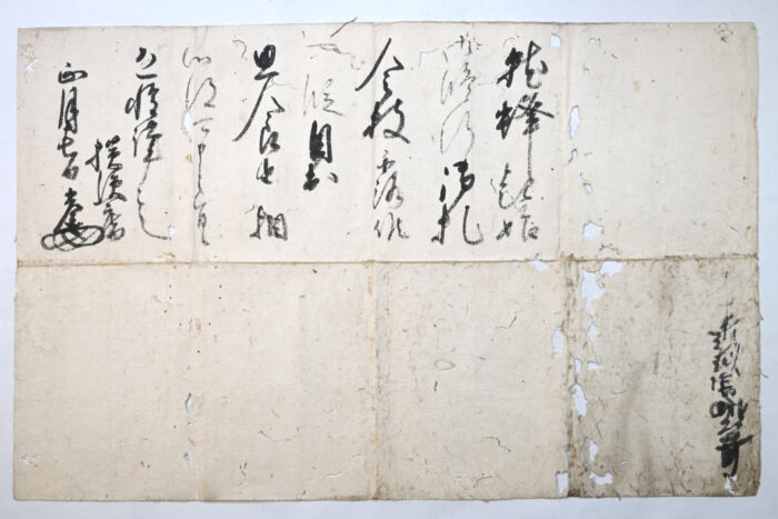 菊岡家は、興福寺の衆徒として中世以来続く名家です。2025年4月幡鎌一弘教授・天野忠幸教授は菊岡家を訪問し、松永久通書状などの戦国期の新資料を見出しました。そのうえで、資料群全体の把握が必要と判断し、菊岡家の御許可をいただいて、調査をすることになりました。