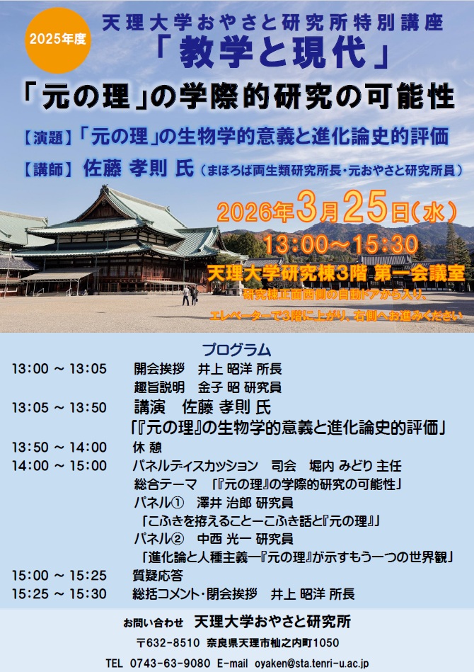 総合テーマ 「『元の理』の学際的研究の可能性」