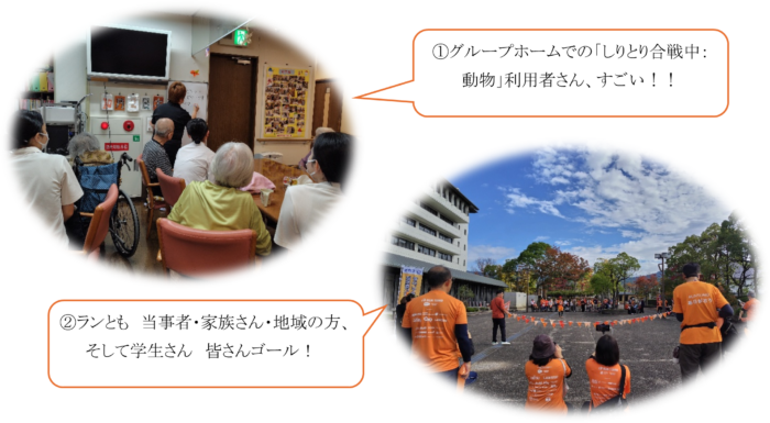 毎年行われるRUN伴(ランとも:認知症の人やその家族、支援者がタスキをつなぎ、ゴールを目指すイベント)にも参加(写真②)し、“笑顔の人だすけ”と、人と人とを繋ぐ架け橋になりたい。