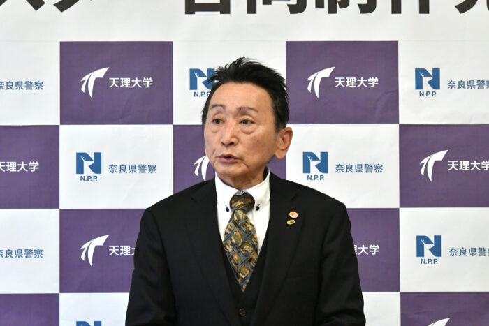 天理大学と天理警察署は、2021年7月に包括連携協定を締結し、これまで交通安全や特殊詐欺防止などの啓発活動を継続的に実施してきました。