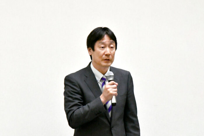 締結式の最後には、協定事項の一つである「教育・文化の発展のための連携」に関連し、2026年4月1日施行の「学校部活動の地域展開」について、中谷体育学部長が本学の取り組みを説明しました。
