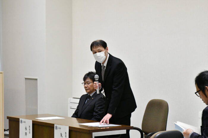 協定書署名に先立ち、上牧町の丸橋教育部理事より、本協定締結に至る経緯が説明されました。丸橋理事は、「小中学校部活動の地域展開を検討する中で、前教育長を通じて天理大学の中谷先生に相談したところ、指導者の確保や放課後塾のアドバイザーといった人材面において、双方の強みや資源を生かした連携が可能ではないかとのご提案をいただきました。地域課題の解決や地域活性化には、両者が連携して取り組むことが有益であると考え、協議を重ね本日の協定締結に至りました」と述べました。