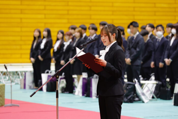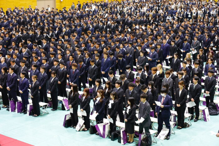 その後、新入生代表がこれからの大学生活への決意を込めて力強く宣誓し、会場には新たな一歩を踏み出す緊張と期待が漂いました。学歌斉唱では、新入生一人ひとりがこれから始まる日々に思いを重ねながら声を合わせ、式典はその余韻を残しつつ終了しました。