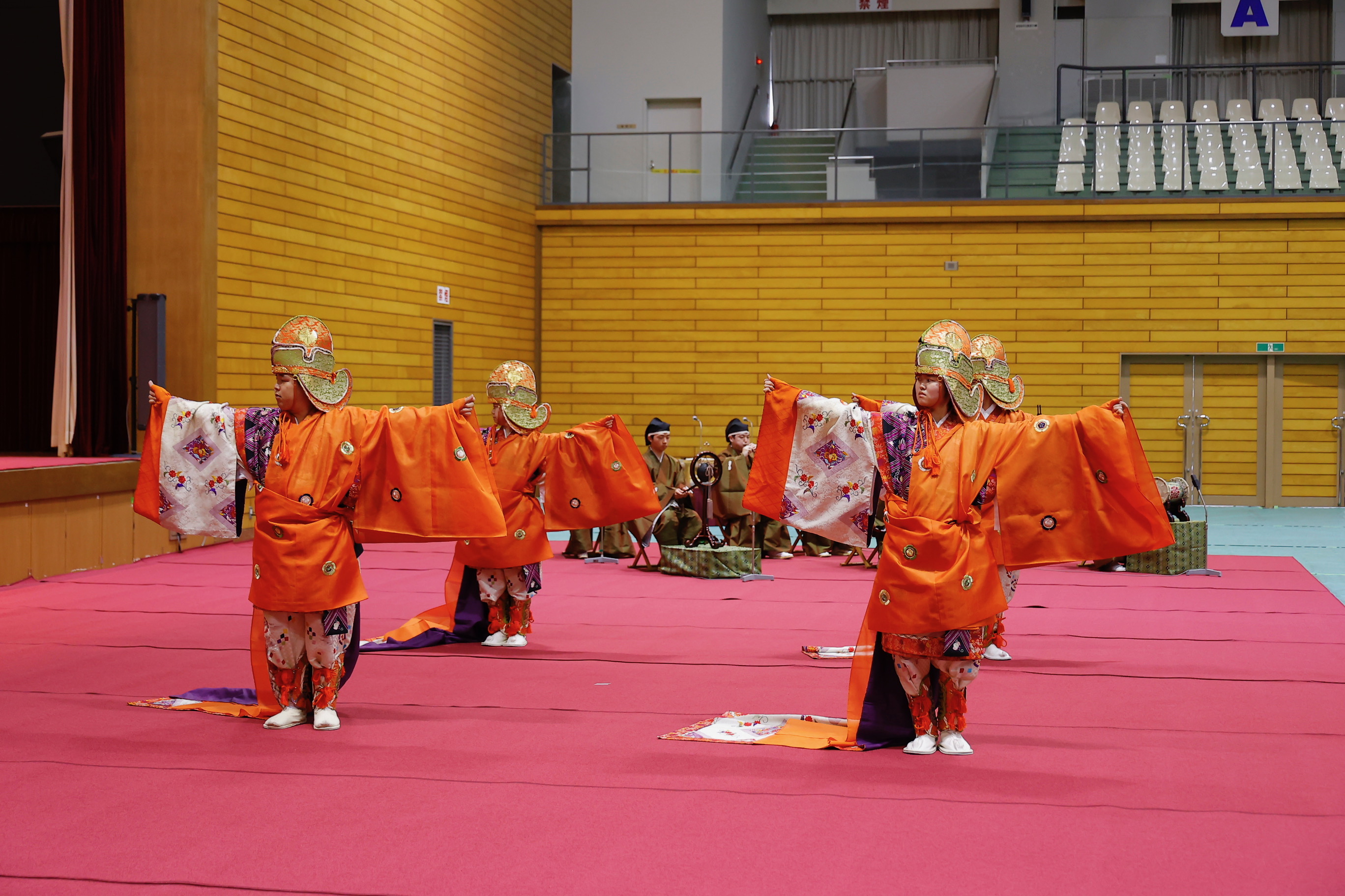 式典に先立ち、創部70年以上の伝統を受け継ぎ、これまでに延べ42か国での海外公演を実現してきた雅楽部が舞楽「賀殿」を披露し、新入生を歓迎しました。